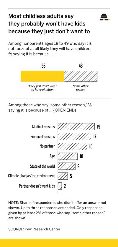 Having children is not an expectation or desire for a growing share of childless American adults, according to a new Pew Research Center report. And many who are already parents say they don’t plan to have more children.