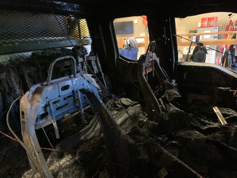 Emergency crew members noticed the fire around 6 p.m. when they smelled smoke in the building, and a ranger looking through the bay windows spotted that the truck’s cab was on fire.