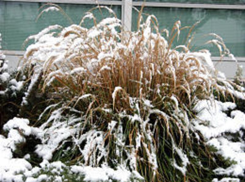 For sheer beauty, look at some of the different species and cultivars of Miscanthus, which comes in a variety of sizes. Miscanthus' delicate feathery plumes look great and will continue to add to the garden throughout the winter.