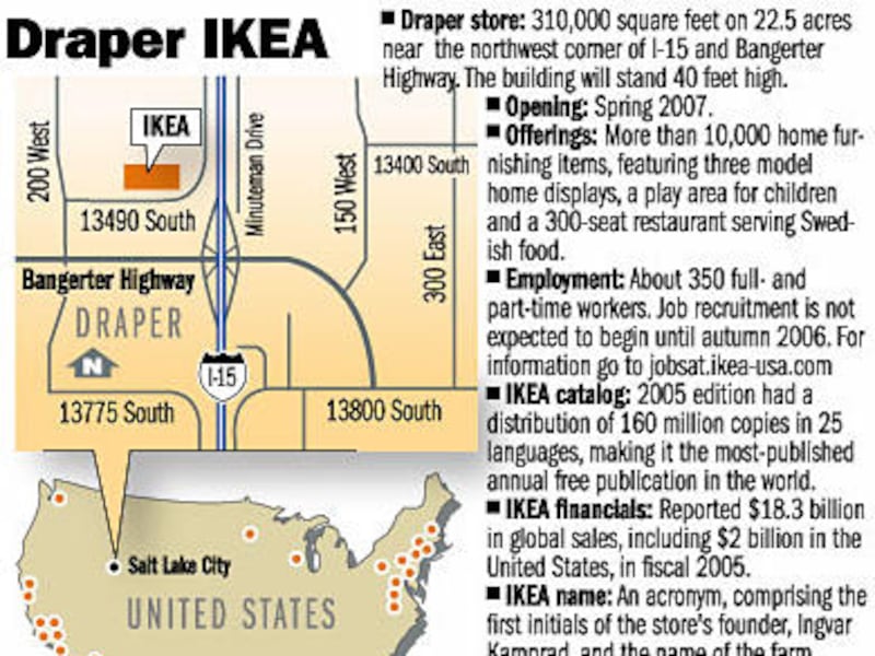 "Today is a wonderful milestone in this great opportunity for Draper city," Baird said. "Since we have announced that IKEA Draper will be opening in spring of 2007, it's been an immediate barometer of success for the city. It legitimizes Draper as a major retail destination for products and services that are not available in any other spot along the Wasatch Front."