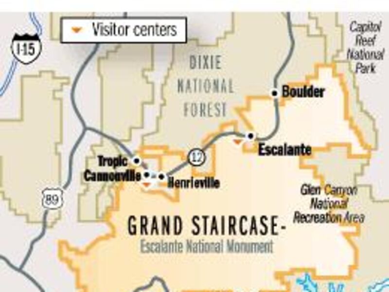 The monument has four visitors centers, all technically outside monument boundaries in Big Water, Kanab, Cannonville and Escalante.