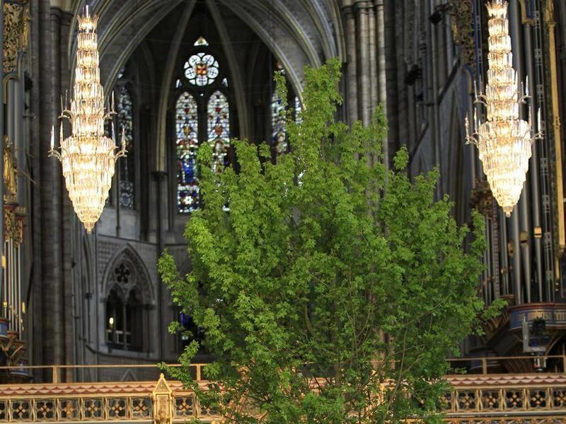 Workmen also delivered some surprising wedding floral decorations to the abbey. Instead of flowers, five men hoisted an 18-year-old potted maple tree inside. In all, six field maples and two hornbeams will form an "avenue of trees" lining the aisle leading up to the altar.