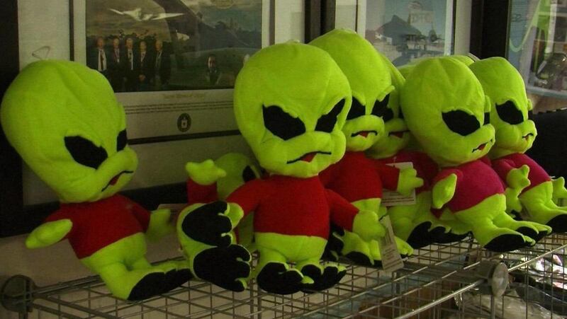 It's hard to tell how serious they are about this whole deal, what with little green men teddy bears and captured-alien mannequins and all.