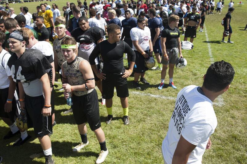 TOP LOCAL TALENT WELL-REPRESENTED: Following the academic instruction, the All-Poly Camp broke for four hours while Nike took over to administer a SPARQ combine. SPARQ is simply a measurement of all athletic traits involved with being a top football player — from speed and agility to strength and balance.