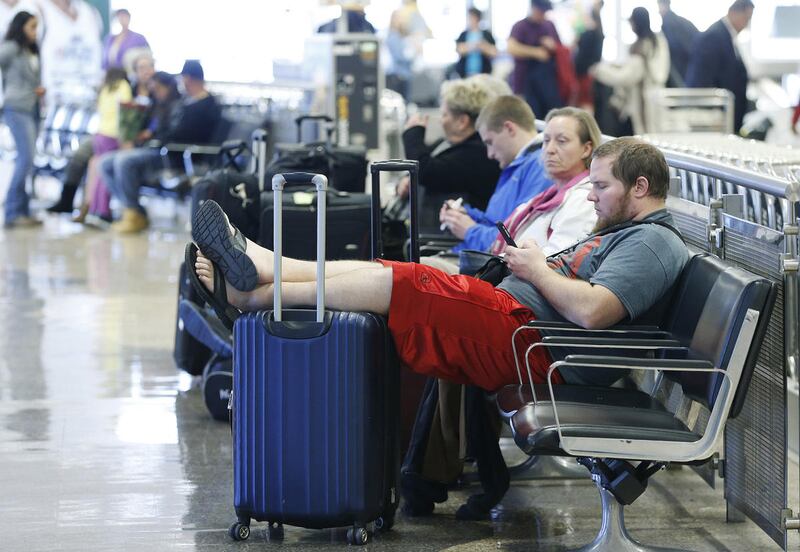 Ryelle Ericksen is also a seasoned traveler. She was sitting on several large bags at the airport waiting for her husband to arrive. Ericksen, from Utah, is a member of the Utah Army National Guard. She flew back to Utah from Nashville on Sunday after a month-and-a-half of training to have a special Thanksgiving meal with her family that night.