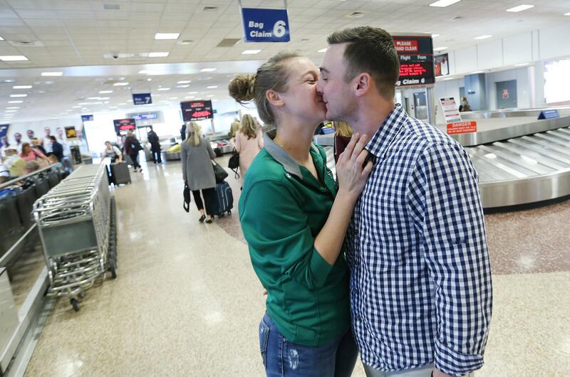Hugs and smiles were a common scene at the airport this weekend as many got an early start on their Thanksgiving travel.