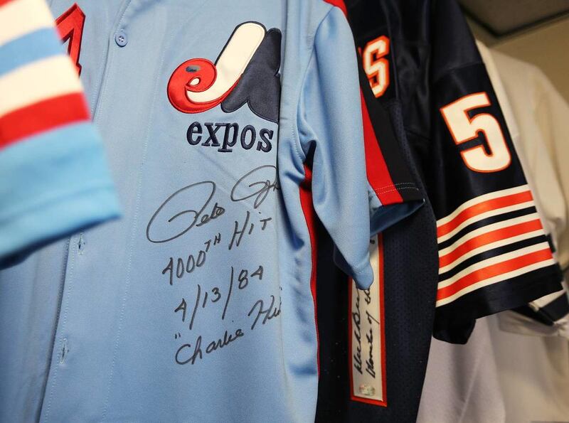 Although Roblez’s collection includes signed items from famed athletes like Joe Montana, Ernie Shavers, Leon Spinks, Trent Dilfer and Jan Stephenson — as well as a Philadelphia Phillies World Series jacket and Montreal Expos jersey worn by Rose, plus uniforms from Emmitt Smith, Earl Campbell and Steve Garvey — his toughest get was a baseball requiring three signatures.