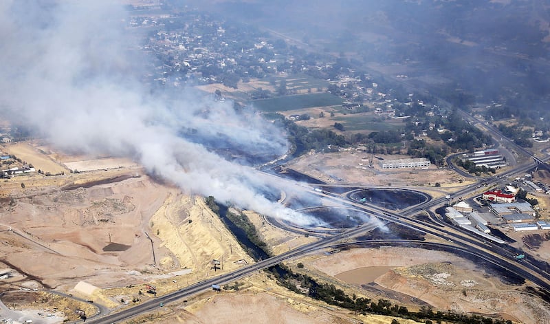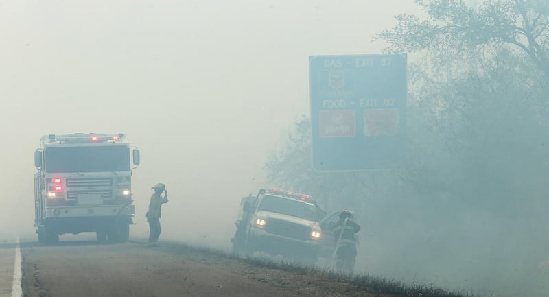 Smoke from the fire quickly began blowing across U.S. 89, obscuring drivers' vision. The highway was closed in both directions for several hours from Harrison Boulevard to 3000 North in Layton. As the flames spread, I-84 was also closed in both directions in the area.