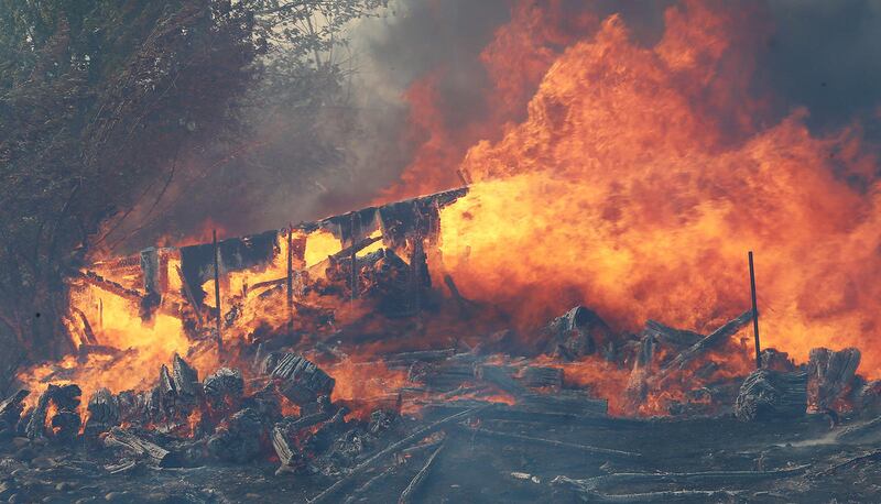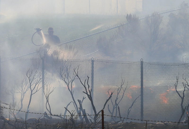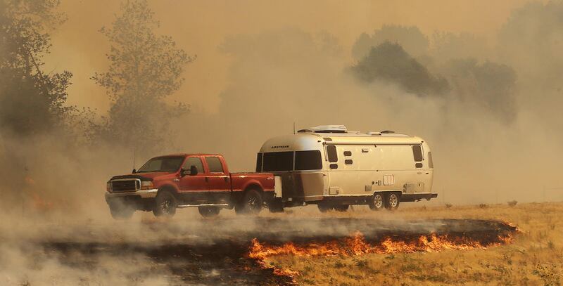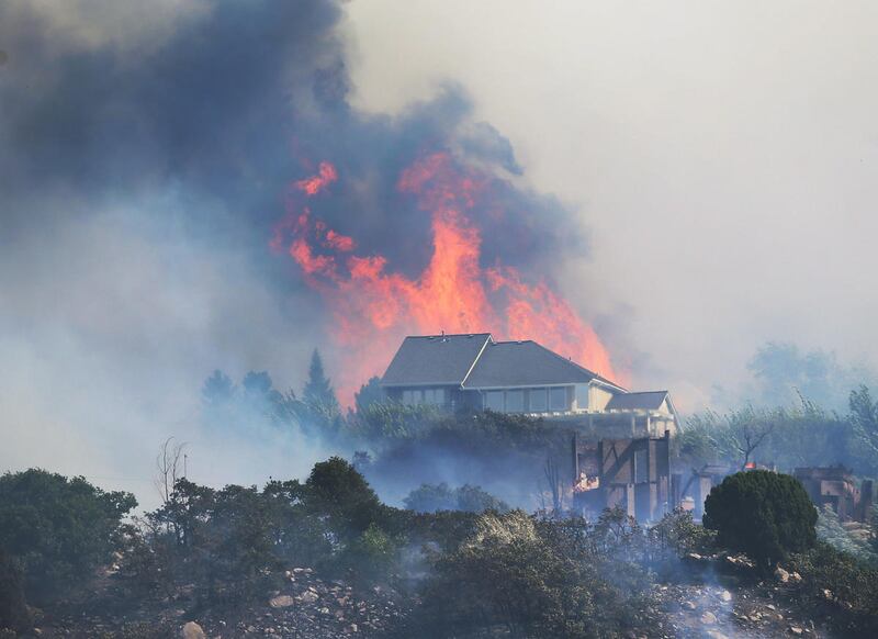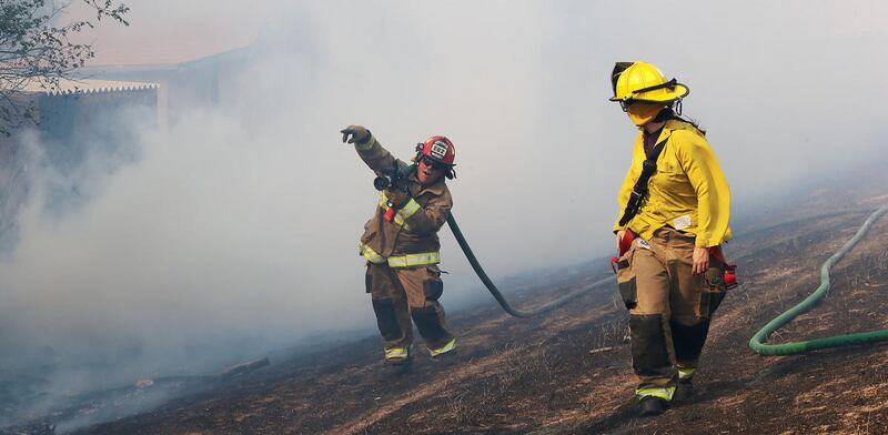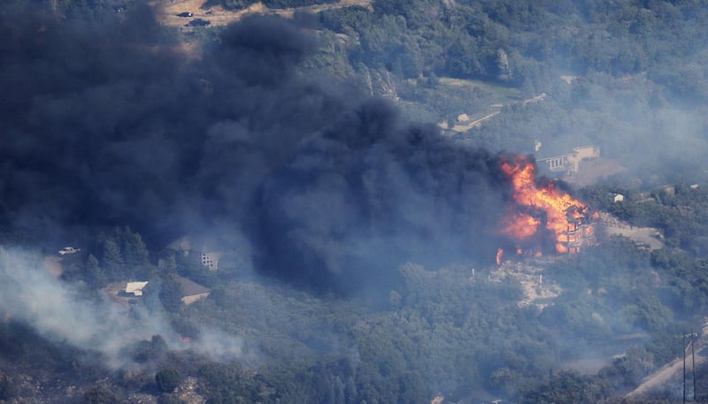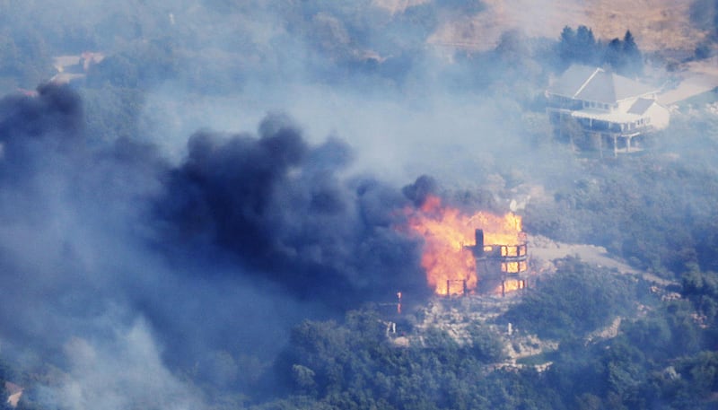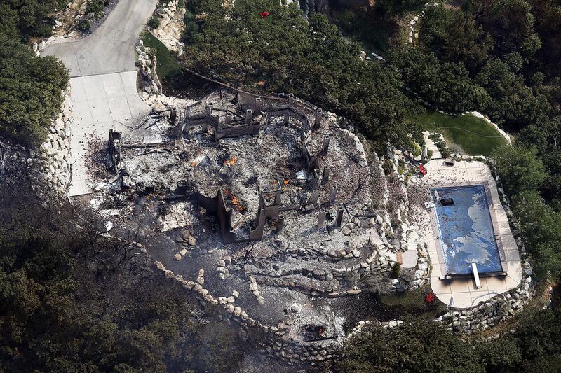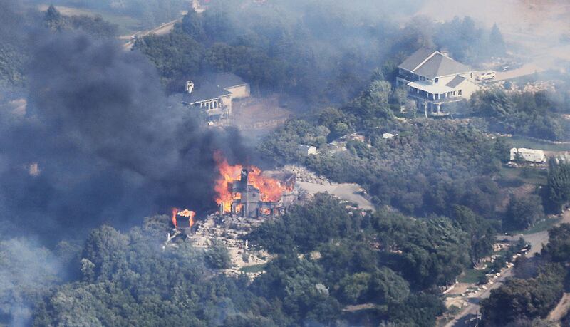 Bauter was making breakfast when he saw a huge plume of smoke sweeping through. The home quickly lost power, he said, cutting off their ability to turn on the sprinklers, so the Bauters began grabbing hoses and dragging them to spigots, watching as flames burned toward homes on a road down the hill from them.
