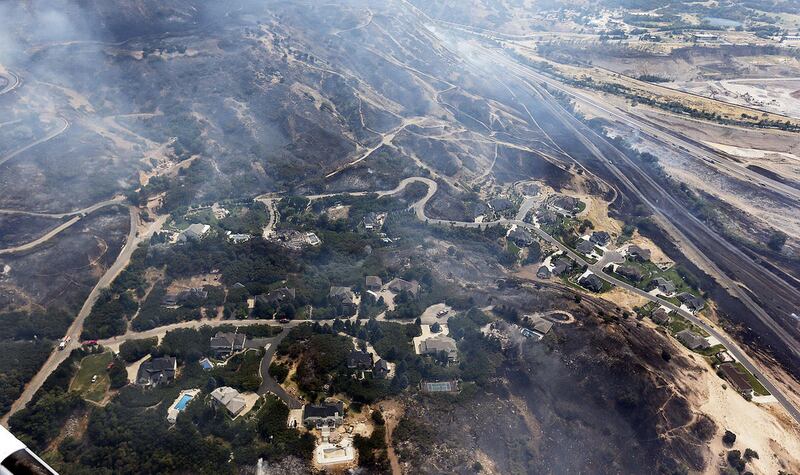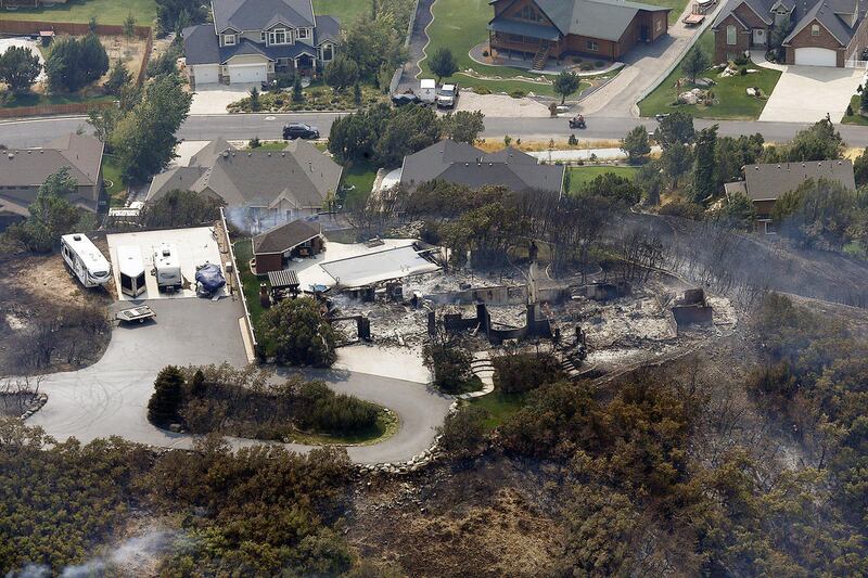 UINTAH, Weber County — Multiple houses were lost Tuesday as winds pushed a fast-moving grass fire out of Weber Canyon and into neighborhoods, forcing as many as 900 people from their homes.