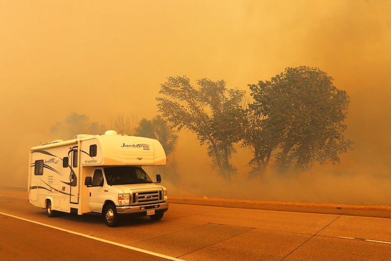 The fire moved so quickly that crews were forced to evacuate from some areas where they had been working, Thueson said. No firefighters were injured.