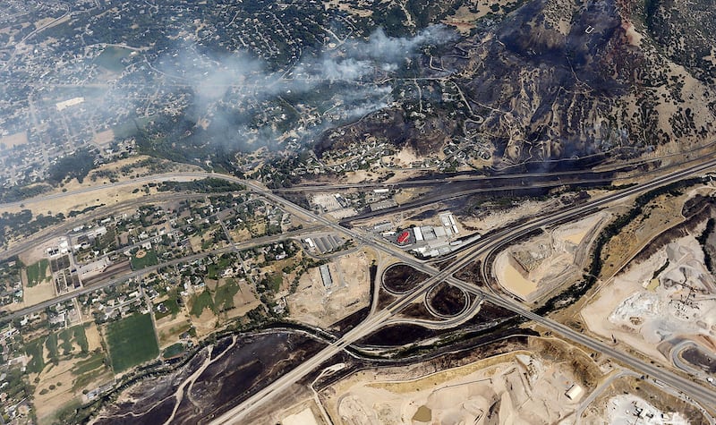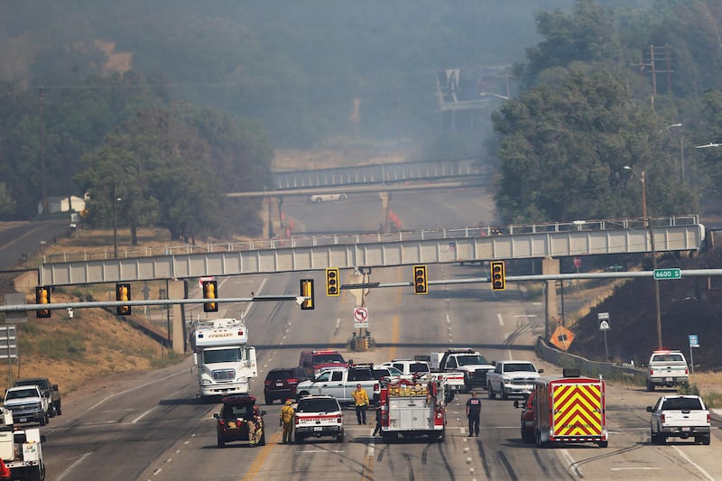As firefighters worked through the day, the Weber Fire District reported multiple structures were burning along Bybee Drive. Layton, which is one of several neighboring crews assisting in the area, reported on Twitter that flames had jumped I-84 and consumed more homes, threatening other structures as well as cars on the freeway.