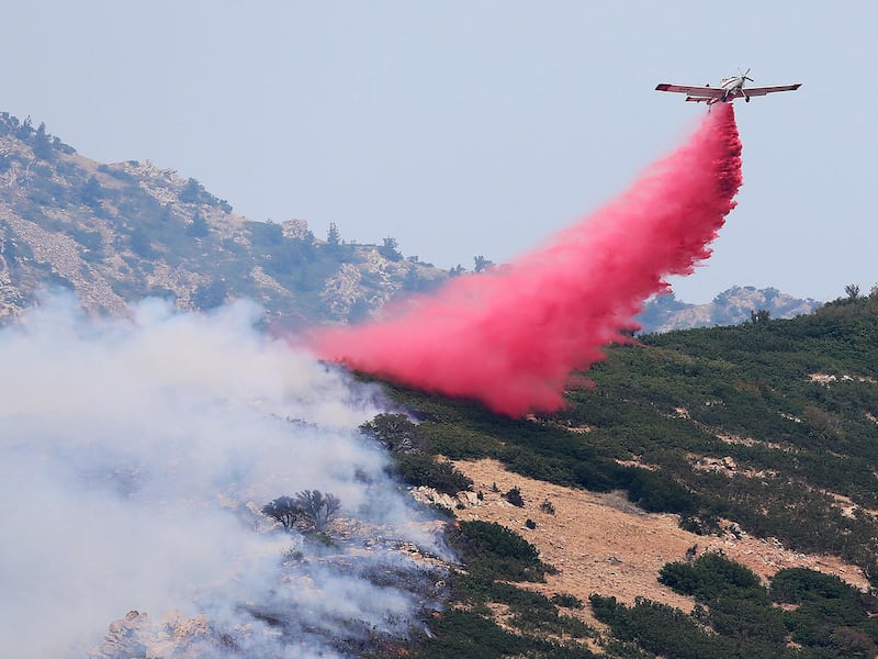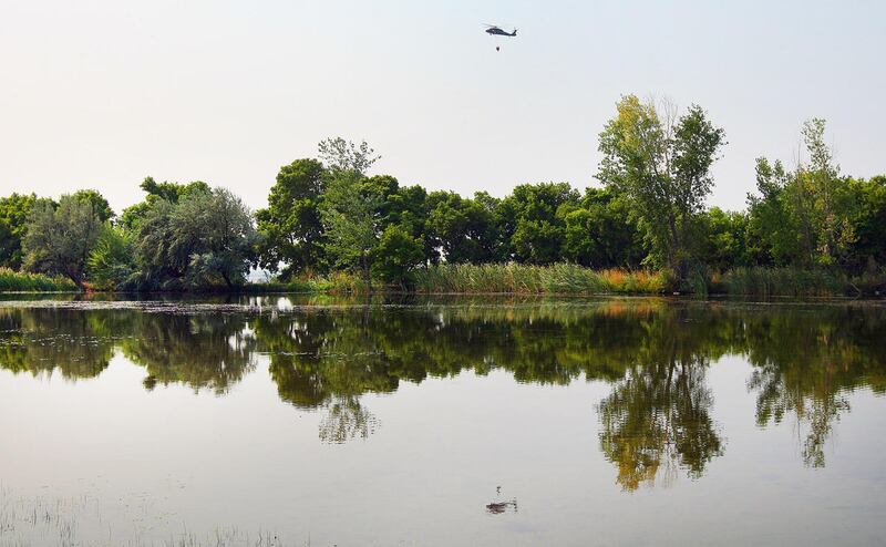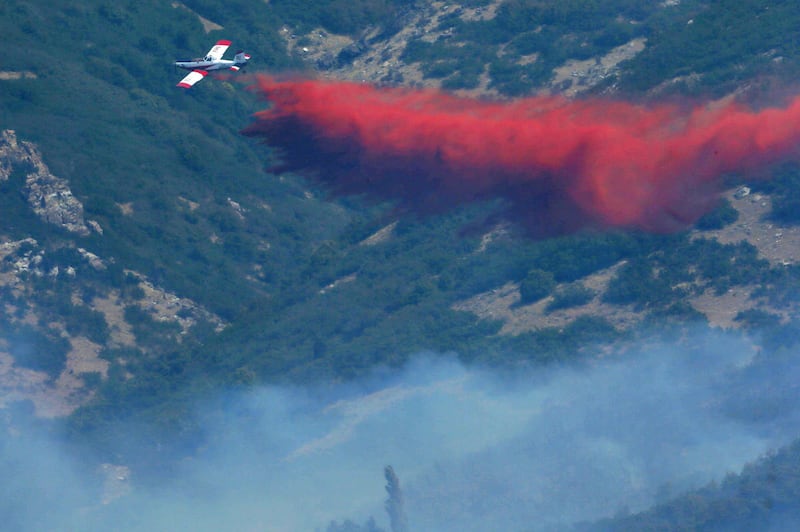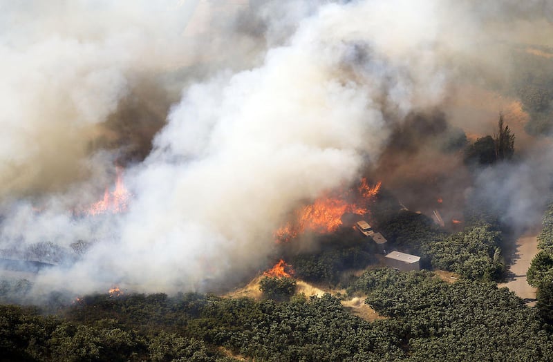 Crews were working by air and on the ground to establish a containment area and protect structures, he said. Firefighters hoped cooler evening temperatures would help crews, but no one knew how winds in the area would behave.