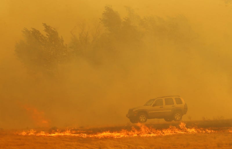 "All the scrub oak down by that lower garage caught fire and I had no choice but to jump in the truck and drive through the flames," Bauter said.