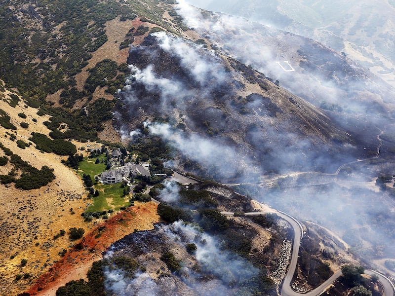 Meanwhile, Bauter said he could see smoldering flames on the hillside near a large painted letter "U," for Uintah.