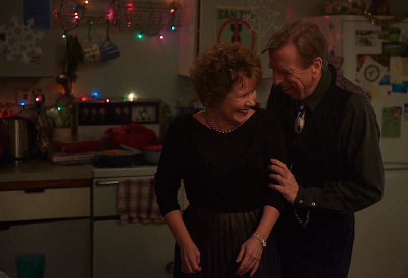 Bif’s friend Charlie (Timothy Spall) is also having marriage problems. His wife Lilly (Sian Thomas) is suffering from Alzheimer’s disease, lives in a care center and has deteriorated to the point where Charlie wonders if he should continue visiting her. Sandra and Charlie initially bristle when they meet, as she is still early in the process of her social comeuppance, but it’s pretty obvious where things are going.
