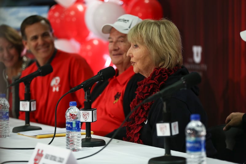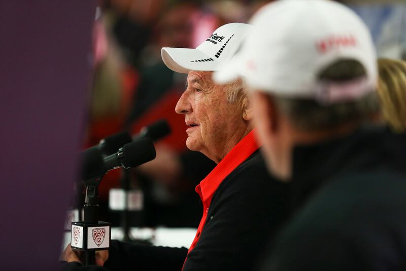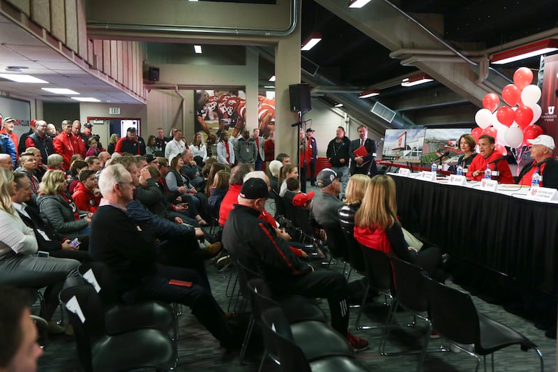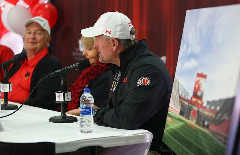 Mark Harlan, Utah’s director of athletics, also attended a press conference prior to the Red-White Game at the stadium.