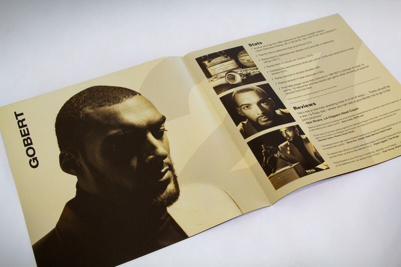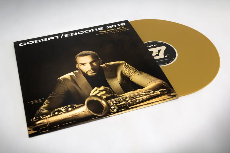 Each voting member of the media will receive the commemorative gold Gobert album, which highlights his achievements throughout the season. The record sleeve and insert were printed by California-based Dorado Music Packaging, and the record itself was produced by United Record Pressing in Nashville, but it doesn’t actually play music — it’s just for decoration.