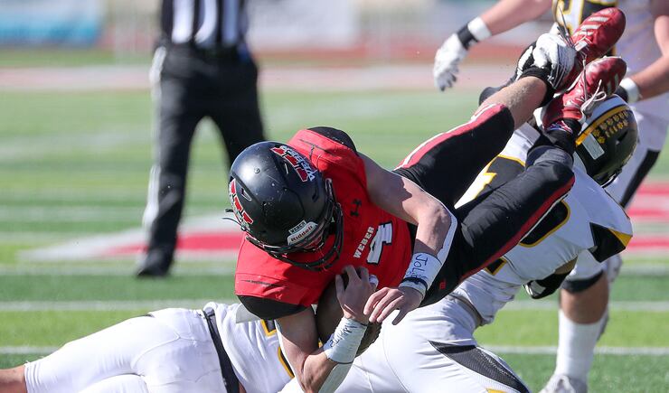Weber’s defense picked up in the second half where it left off, forcing Roy into a quick punt, and then scoring quickly at the other end as DeVries hauled in a 47-yard TD pass from Lindsay.