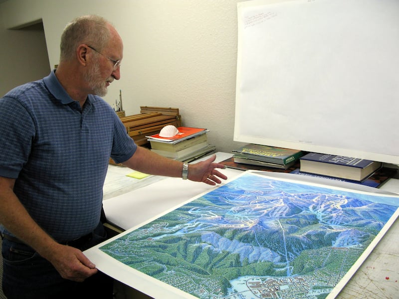 Maybe it helped your family safely navigate down the mountain. Maybe you took it as a souvenir, thumb-tacking it to your bedroom wall, like many young skiers. Maybe you bought his book, “The Man Behind the Maps,” which was released in 2020 to showcase the artist’s illustrious, 35-year career painting the trail map for what seems like every ski resort in America.