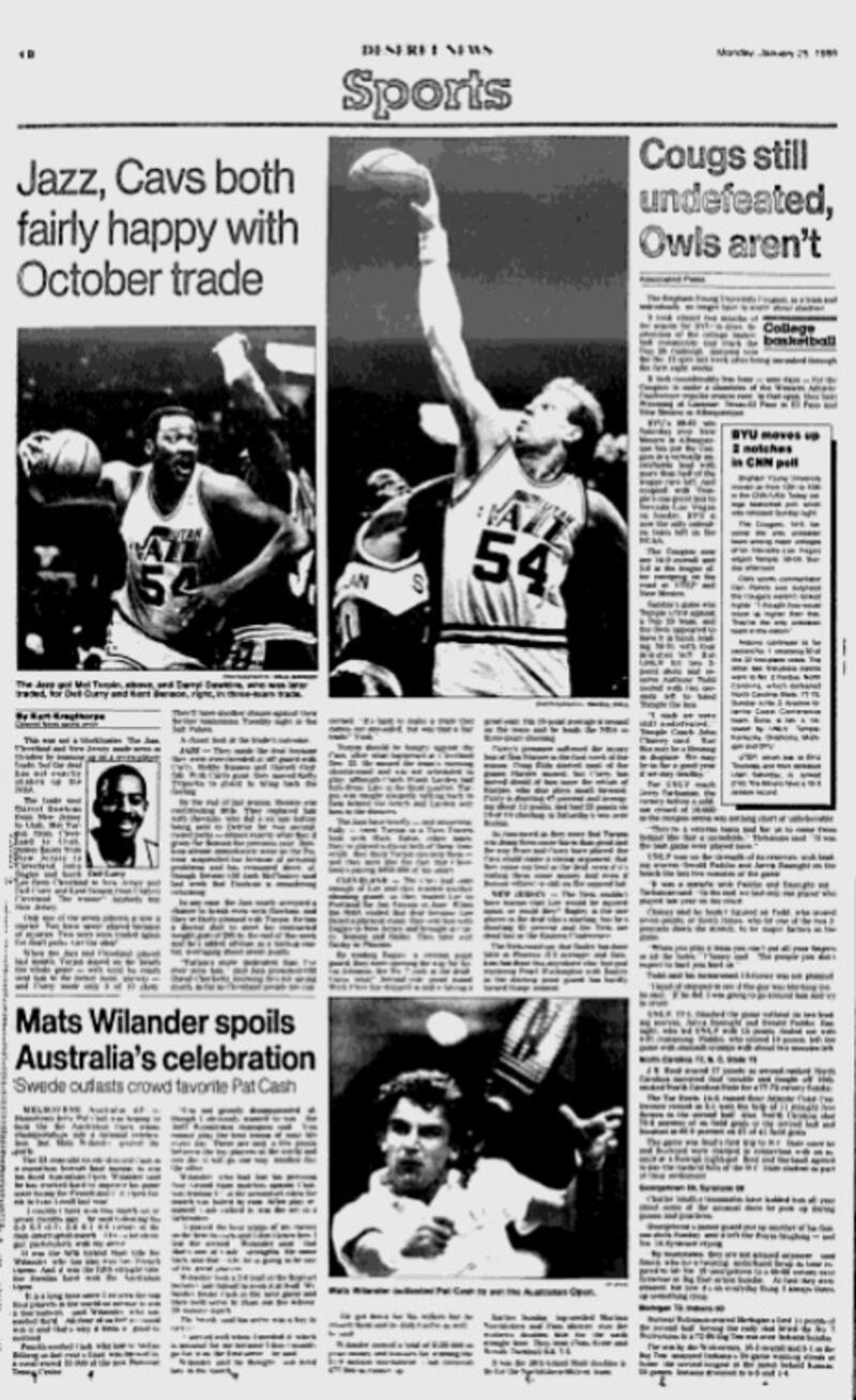 That year, Frank Layden was the Jazz coach, and the roster included young stars Karl Malone and John Stockton, as well as aging veterans like Darrell Griffith, Kelly Tripucka and Darryl Dawkins.