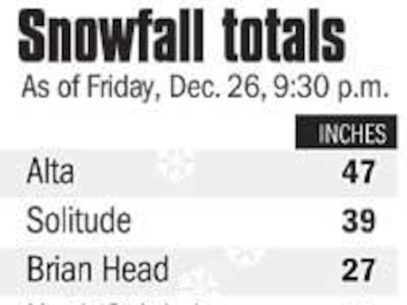 Approximately 15 inches of snow had fallen at Salt Lake City International Airport by Friday evening, putting the storm — which had moved into Utah after causing mudslides and other mayhem in California — in the record books for several categories. While Provo reported only 2 inches, several Davis County locations had totals in the teens, and Alta notched 47 new inches of snow from the storm.