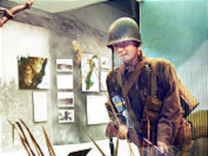 FORT DOUGLAS — Visitors to the new Fort Douglas Military Museum exhibit that documents the feats of the 96th Infantry Division (Deadeye) during World War II's battle for Okinawa see a diorama of a soldier moving up a hill and the life-size painting of a soldier's face behind him.