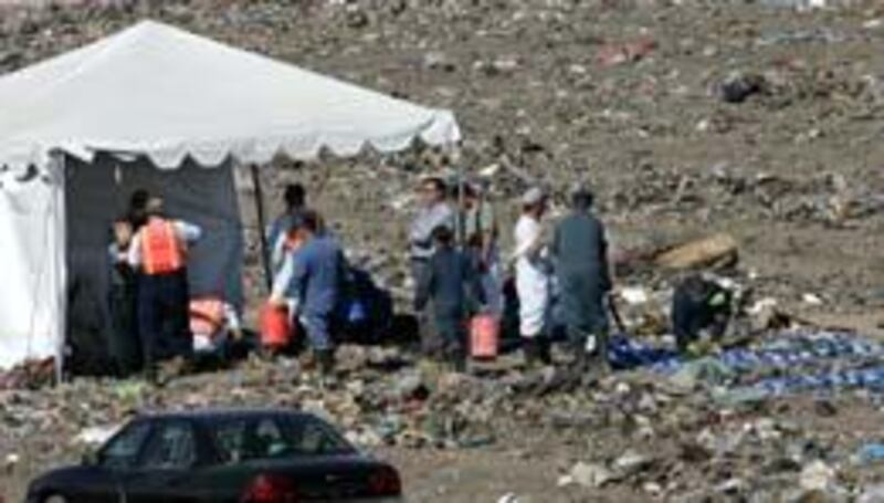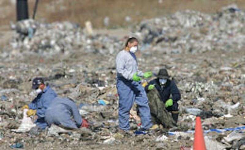 Over the past three weeks, a search team of 20 to 25 people, dressed in overalls and steel-shanked boots, have combed through one-ton sections of garbage with pitchfork-like rakes and sometimes by hand.