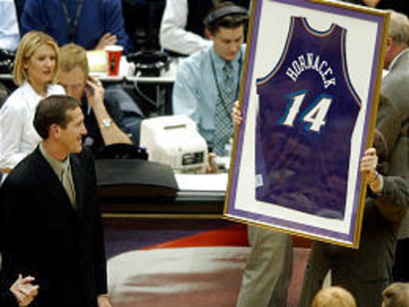 Pete Maravich, No. 7 (in 1985); Frank Layden, No. 1 (in 1988); Darrell Griffith, No. 35 (in 1993); Mark Eaton, No. 53 (in 1996); and Jeff Hornacek, No. 14 (in 2002).