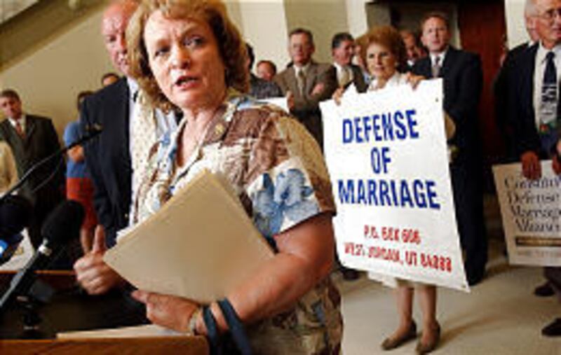 As the president of the conservative Utah Eagle Forum, Ruzicka has politicians looking over their shoulders. She is a favorite subject of the media and letters to the editor. She has been called everything from fanatical to heroic to wacko to intolerant. She is famous for her phone tree and for browbeating — that's what rivals call it — legislators from her perch in the gallery above the state Legislature, which she once did while a half-dozen of her children sat by her side doing their homework.