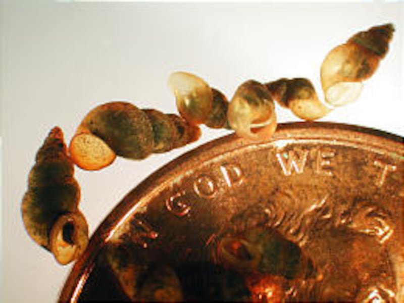 The invaders are tiny aquatic New Zealand mud snails (the scientific name is Potamopyrgus antipodarum), which reproduce at an alarming rate. They out-compete native snails and other invertebrate species and might not be readily digested by our trout.
