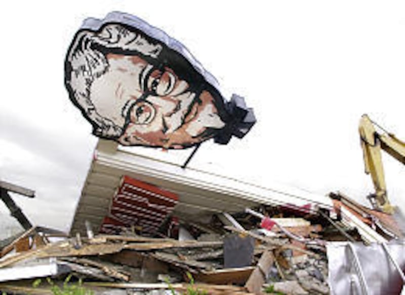 On Tuesday, that first KFC restaurant in the world was a pile of rubble, the familiar sign bearing the colonel's smiling face upside-down atop it. But by early August, KFC will be reborn on the same spot as a restaurant and museum that will tell how those buckets of chicken came to be sold at nearly 12,000 restaurants around the globe, generating annual sales of around $10 billion.