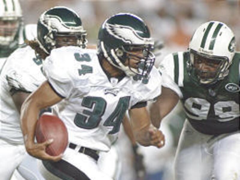 While in Philly, Mahe drives his old college vehicle, a mid-'90s Ford Explorer. He parks it beside other Eagle players' fancy cars, a Lexus here, a Porsche there and a few Hummers. He bought a second car so Sunny could take the Ford. One day he went to a car auction, plopped down $1,200 and drove the junker to work out. When Mahe came out after toiling under the weights, the car failed to start. It remains in the training facility parking lot.
