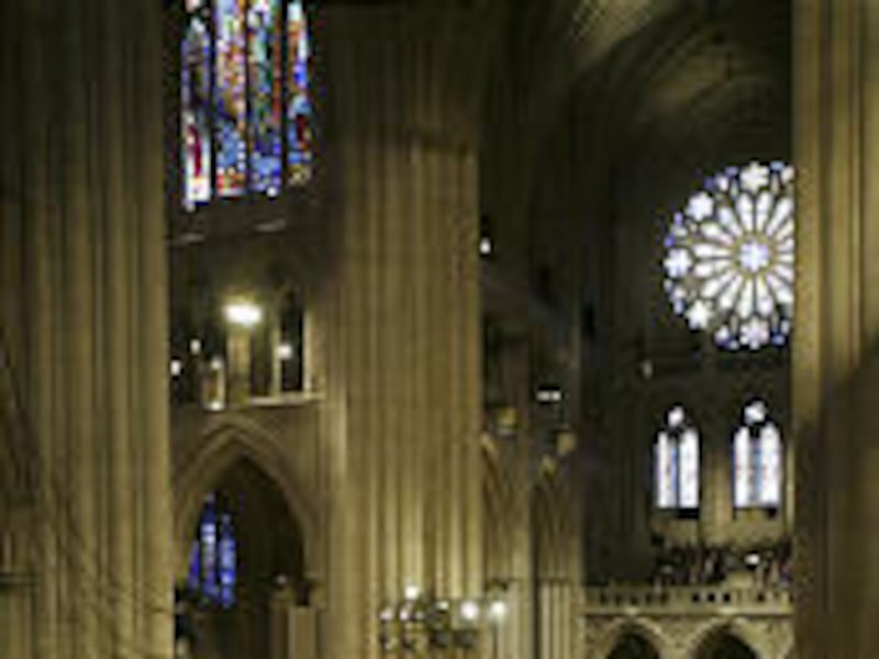 At Friday's church service, the powerful shared the pews with the once-powerful at the majestic Gothic cathedral in northwest Washington, the world's sixth-largest cathedral.