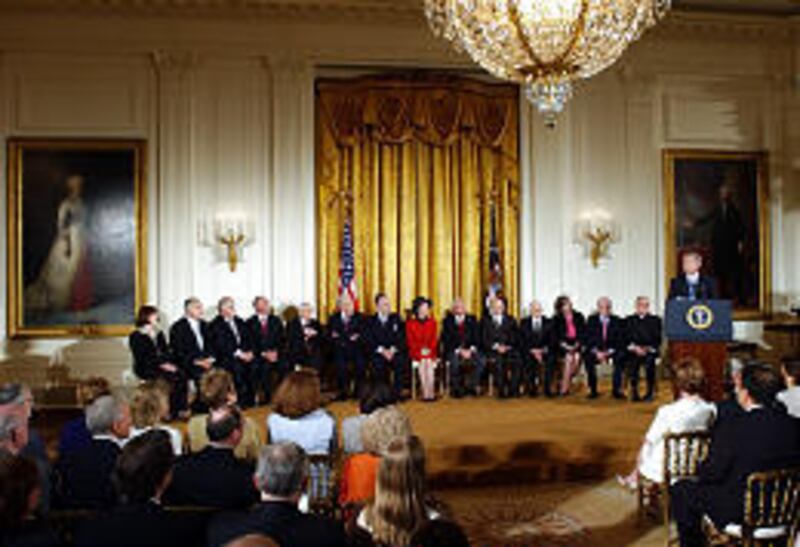 He was one of 13 recipients honored at an East Room ceremony. Others included such people as Pope John Paul II (who received his medal recently when Bush visited the Vatican), golfer Arnold Palmer, actress Rita Moreno, cosmetics company founder Estee Lauder and National Geographic Society chairman Gilbert M. Grosvenor.