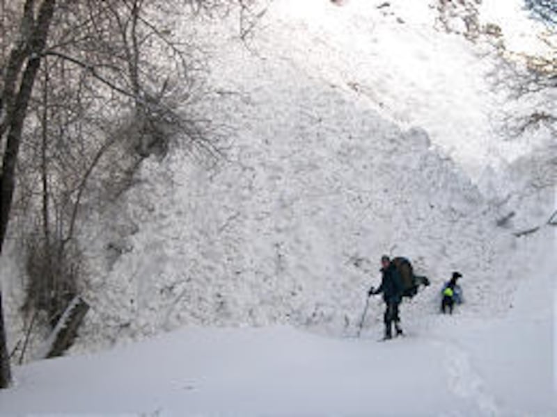 One slide broke near Aspen Grove at about noon, near the spot where three snowboarders were buried in December 2003. This time no one was in the area.