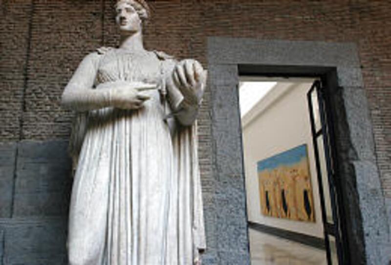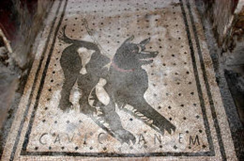 We walked into one of Pompeii's bath houses, its large concrete dome undamaged by the volcano. Even on that dreary day, the opening at the top filled the space with gentle light. Improta showed me a bakery, a "small" theater that could seat 1,000 people (the big one could seat 5,000), and some of the most famous homes — such as the House of the Tragic Poet (named for the murals found inside). The tile mural in the doorway depicts a growling dog straining at his leash and the words "Cave Canem" — Beware of Dog.