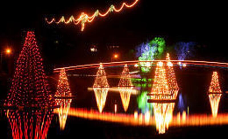Below, Christmas lights are reflected in the calm water of Salem Pond Monday. A smaller display, left, dazzles visitors to Pond Town Christmas, a holiday tradition in the town. There are several holiday light displays throughout Utah Valley, and some can be enjoyed from inside a warm vehicle. That's a plus as temperatures drop and more snow blankets the valley. A storm that rolled in Tuesday night will linger this morning. Today's highs will be 35 with lows near 30. Another storm is possible Friday night and early Saturday.