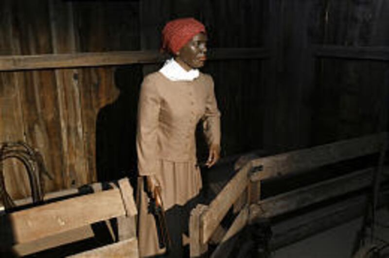 Next door, a lifelike model of Harriet Tubman stands in a barn and, in a gruff voice, encourages you to take your chance to run to freedom on the Underground Railroad.
