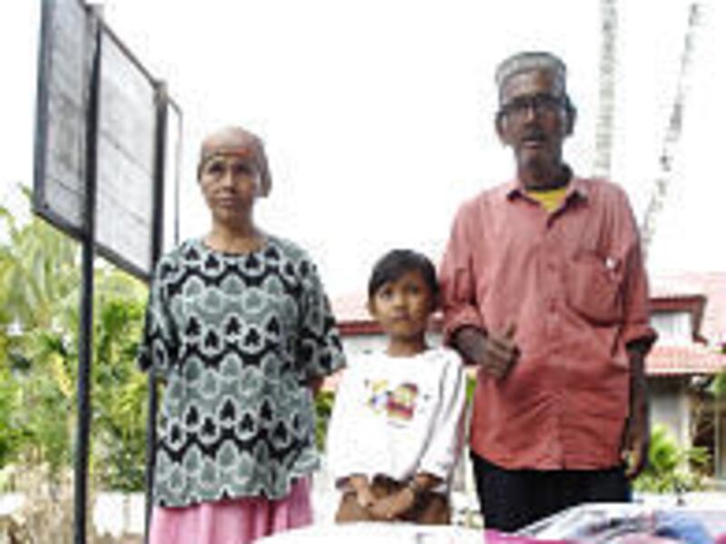 "Tired," he managed to communicate in English. A translator asked him a question about the Americans asleep inside. His response was put into English. "We lost everything. Our city is ruined. Why did these women come? Why come to Banda Aceh?" he asks.