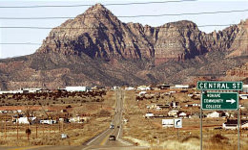 The towns sit at the foot of the picturesque Vermillion Cliffs — big red rock towers that stretch like fingers into the sky with deep, weathered lines slicing their sides. It is a strange mix of apparent wealth and poverty — paved streets number almost evenly with those packed of clay, and enormous homes sit alongside modest two- and three-bedroom houses.