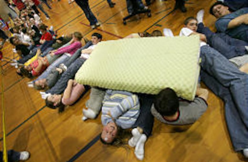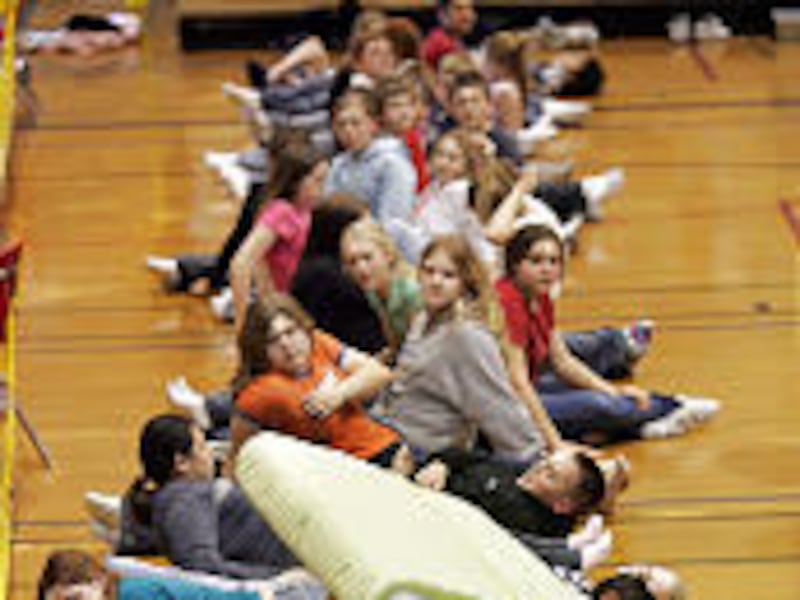 One hundred Eisenhower students lay down next to each other to create the fastest human conveyor belt. They couldn't use their hands or their legs — they had to transfer the object only by rolling their bodies.