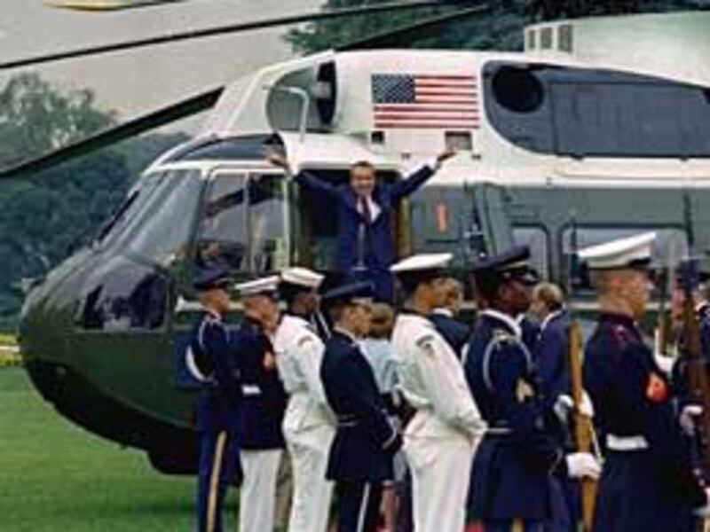 Nixon becomes the first U.S. president to resign. Vice President Gerald Ford becomes president and later pardons Nixon of all charges related to the Watergate case.