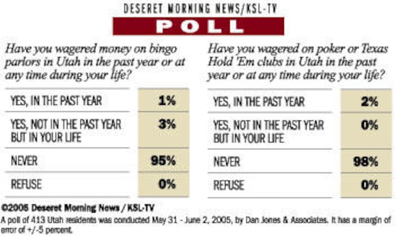 A new Deseret Morning News/KSL-TV poll by Dan Jones and Associates finds that 4 percent of Utahns say they have gambled at a bingo hall in Utah, including 1 percent who did so in the past year.