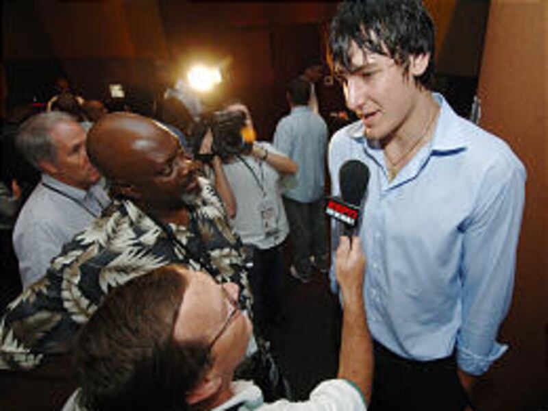 Bogut was surrounded by up to 50 reporters and cameramen during the half-hour session and he handled dozens of questions dealing with his background in Australia to his college experience to how he's going to spend the money he'll get from being a top draft pick.