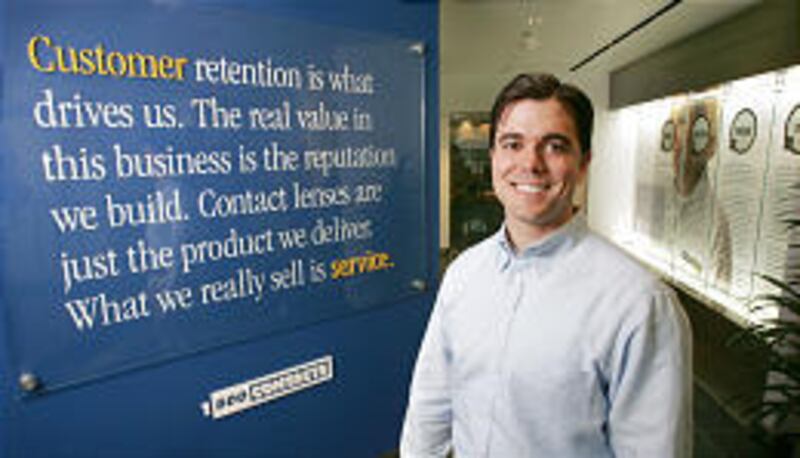 That helps explain why 1-800 CONTACTS ships most of its orders with no signature required. It would be pointless to require people to sign for their contact lenses, he said, because the company's primary goal is to reduce hassle.