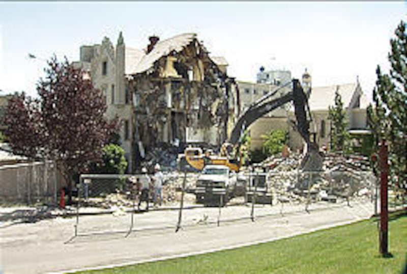The east wing of the Salt Lake Regional Medical Center (formerly Holy Cross Hospital) is shown being demolished this past week as part of the hospital's renovation project. IASIS Healthcare will undertake a multiphase $36 million renovation of the 129-year-old hospital by owner IASIS Healthcare that will take several years. The space created from the east wing's demolition will be turned into a section for new medical offices, offering various services for community members. A groundbreaking ceremony is tentatively planned for August.