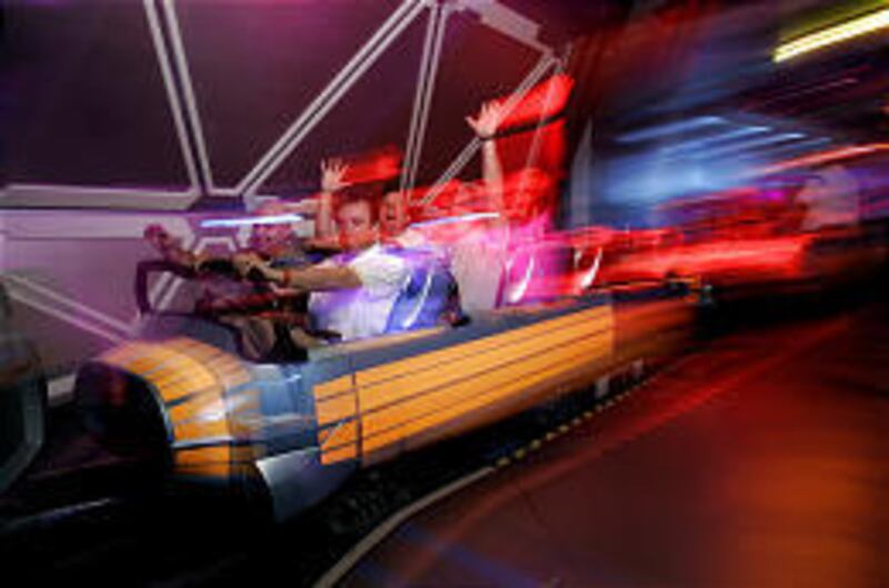 Then the action really dials up, as the castle transforms into a Star Tours battle station. Ominous green lasers rake the skies, and one space intruder is cut down in a shower of sparks right above Main Street's Plaza Inn. Combat in deep space is also the theme of Disneyland's newest ride, which may not have the instant cachet that accompanied the opening of the Pirates, Space Mountain or Indiana Jones, but has generated some intrigue — while demonstrating what kind of leaps Disneyland has made over its 50 years.