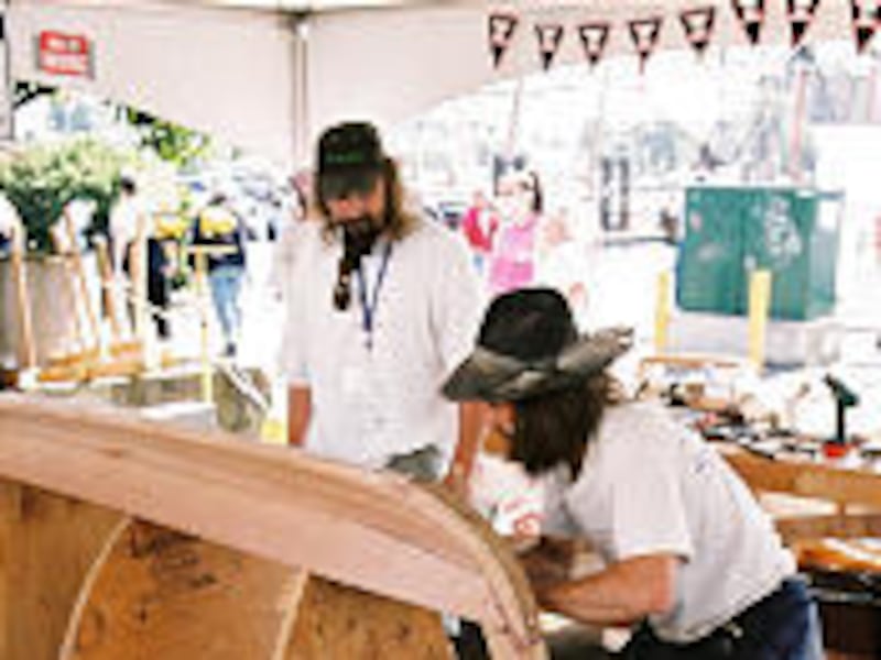 Nearby, Nick Kaminski and shipwright Eric Sadilands were fitting planks to a wooden dory in a Cowichan Bay Maritime Center boat-building demonstration.