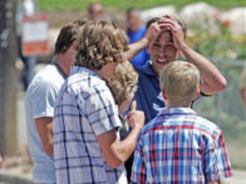 Just minutes before 2 p.m., the Harrisons drove up 500 South in Bountiful in a black limousine. The crowd cheered as "Extreme Makeover" host Ty Pennington greeted all five: Harrison, 40; his wife, Lisa; and children Chase, 15; Ben, 13; and Claire, 7.